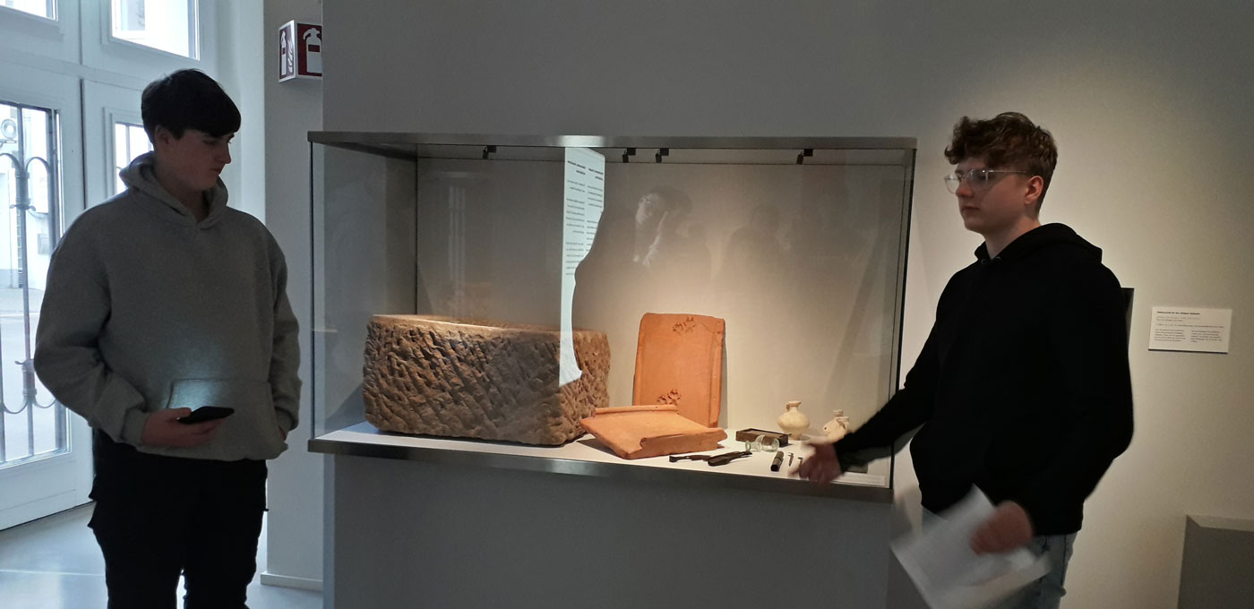 Die Schülerinnen und Schüler der Klassen G10 haben sich in Köln, der römischen Stadt Colonia Claudia Ara Agrippinensium (CCAA), und im dortigen Römisch-Germanischen Museum umgesehen. Sie konnten entdecken, wie erstaunlich ähnlich antike Gegenstände ihren modernen Äquivalenten sind. Ein römisches Arztbesteck oder die zahlreichen Beispiele römischer Glaskunst, allen voran das berühmte Diatretglas, haben alle begeistern können und auch der ausgestellte Schmuck würde heute noch Trägerinnen finden.
