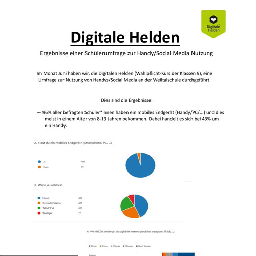 Die ‘’Digitalen Helden’’ sind Schülerinnen und Schüler aus den Klassen R9 und G9 in der Weiltalschule.